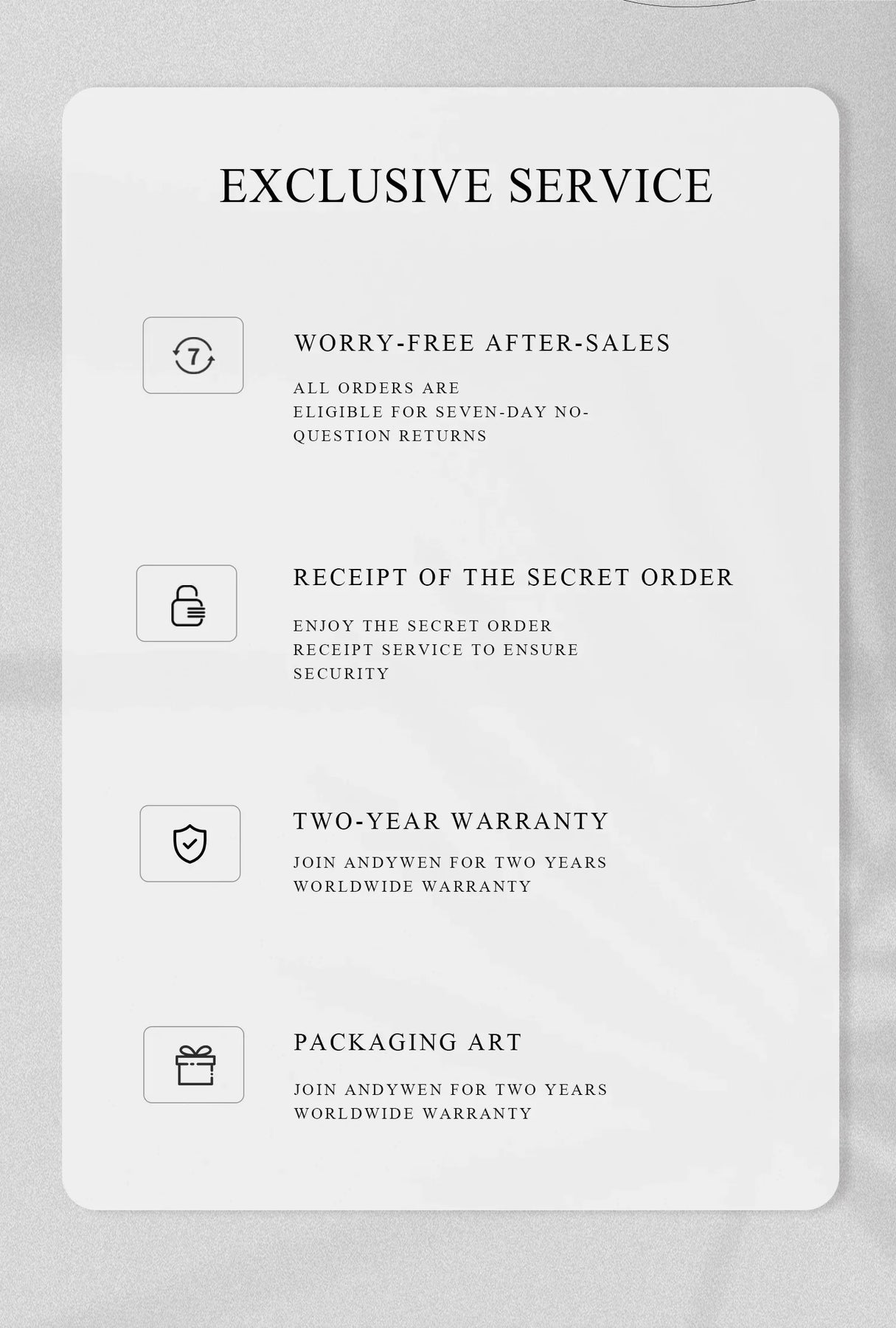 Ex: Shipping and return policies, size guides, and other common questions.
